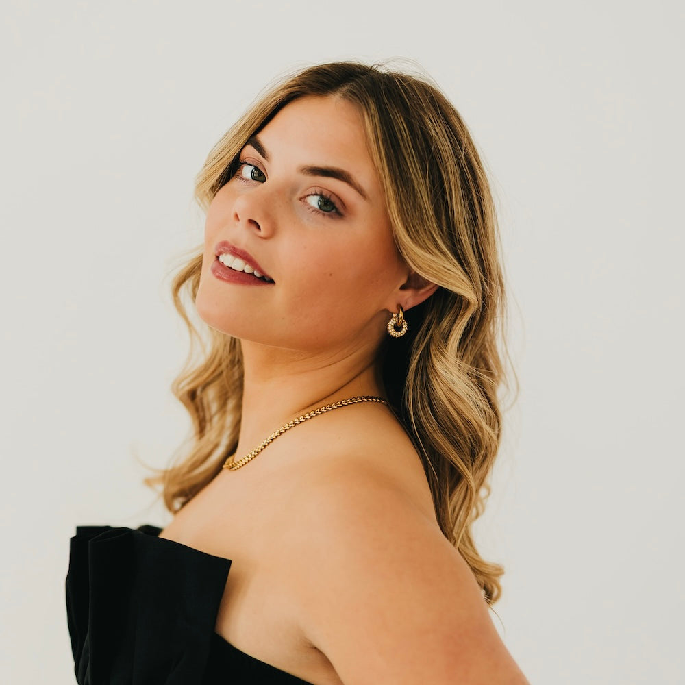 The Ivy Interlock Hoop Earring embodies quiet confidence with its interlocking design and premium finish. Available in gold or silver, these waterproof earrings are engineered for longevity, resisting moisture and maintaining their radiant sheen through everyday moments and special occasions alike. The geometric interlock detail provides visual depth while remaining effortlessly wearable. An investment in timeless style that transcends trends.