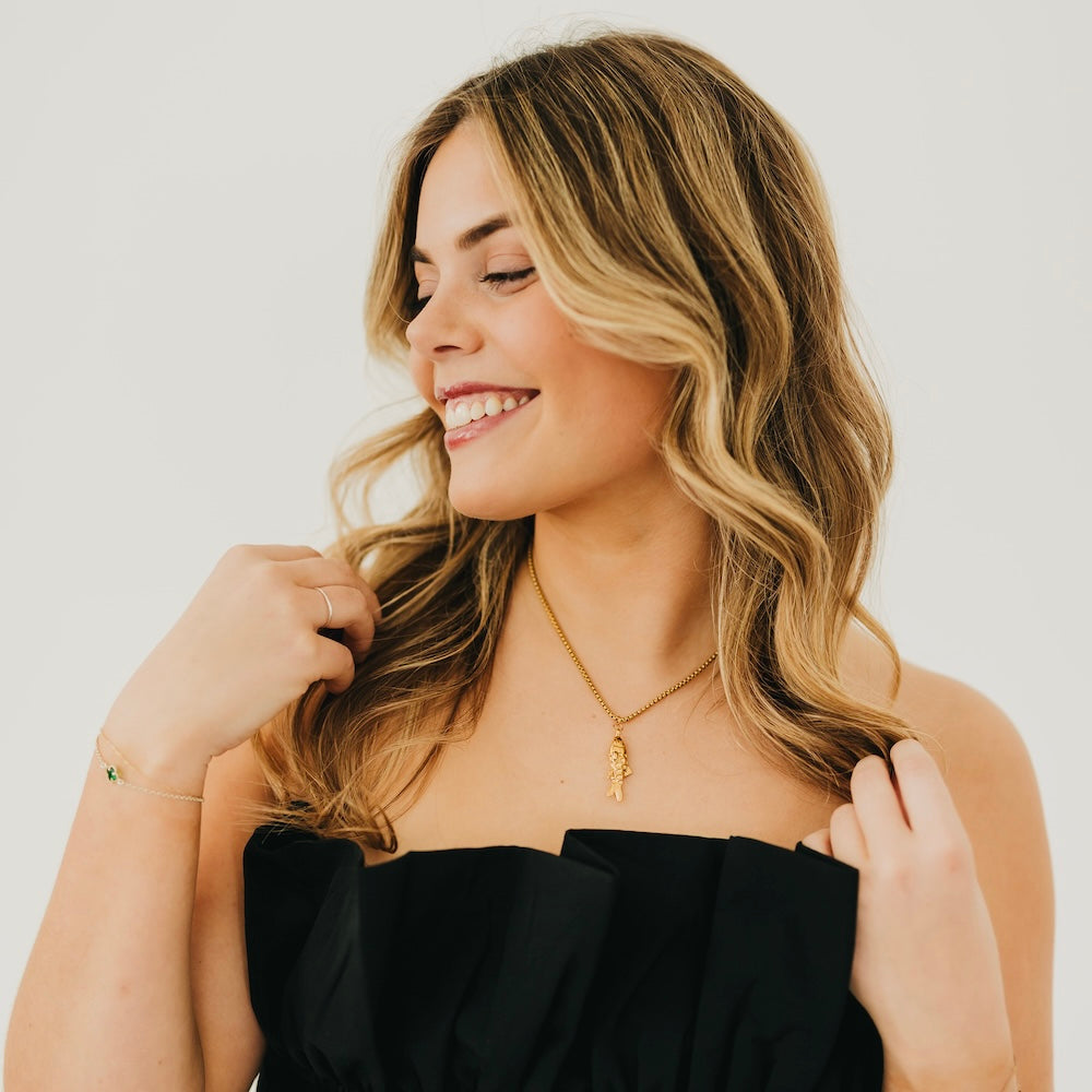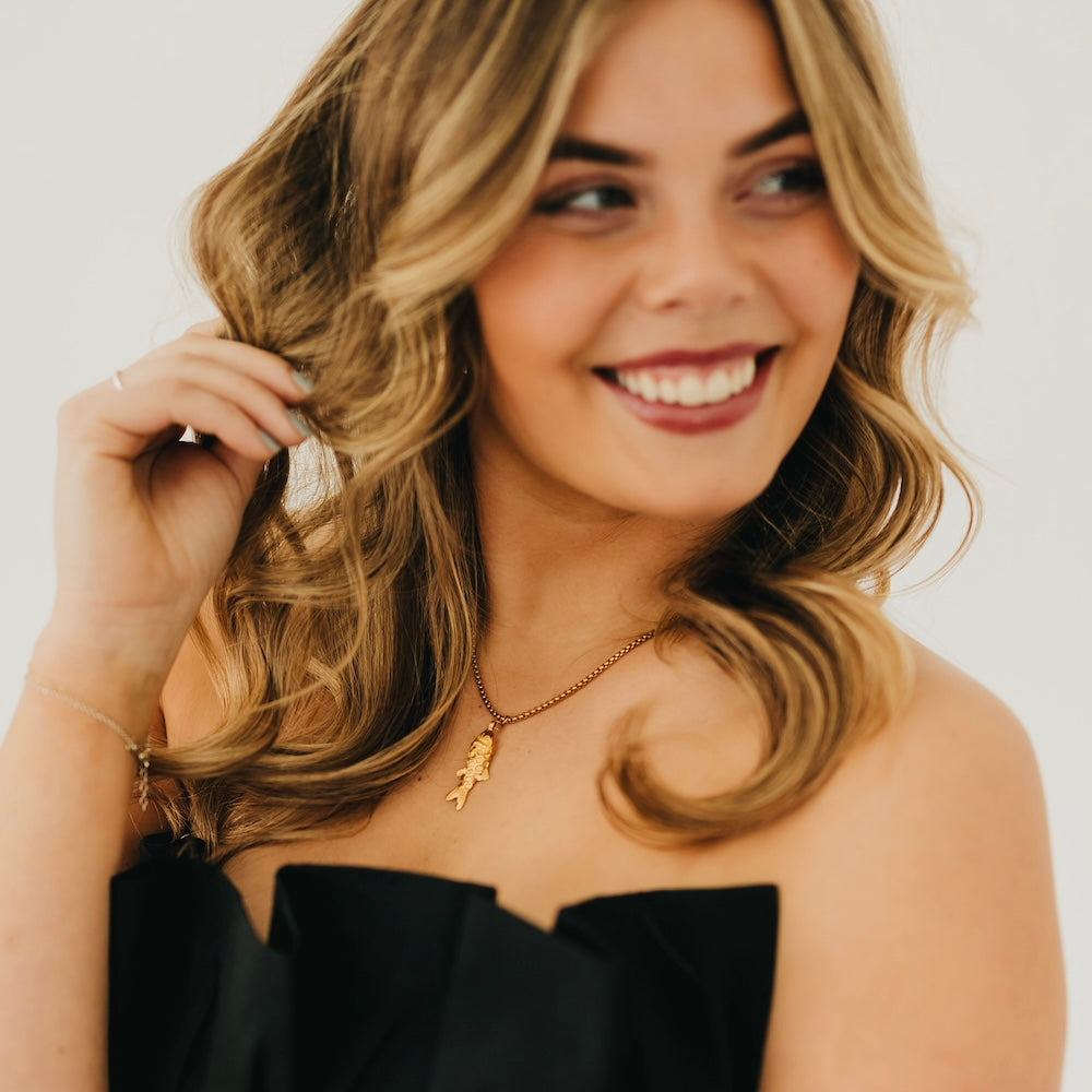 Swim through life with timeless elegance. This Lucky Fish Necklace combines meaningful symbolism with everyday wearability. The fish represents prosperity, abundance, and good fortune across cultures. A delicate yet striking piece that sparks conversations and brings positive energy to your style. Wear it as a reminder that good things are always within reach.
